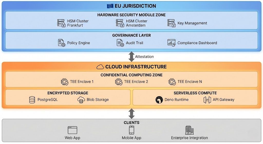 This is technically realized through Hardware Security Modules (HSMs)—specialized, tamper-resistant devices that perform cryptographic operations and store keys. The crucial point: These HSMs are located in EU data centers, operated by EU companies, and subject exclusively to EU law .